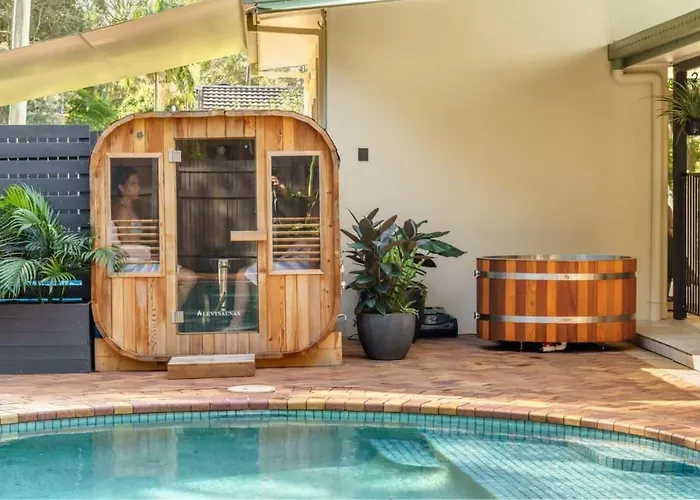 A full kitchen is fitted with facilities you will need to prepare your own meals, including an electric kettle, a fridge, and kitchenware. Well-connected to many sights, Coolum Family Hideaway With Pool, Sauna & Ice Bath villa is not far from Coolum Peregian Sports Complex bus station.